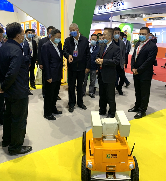 烟台市委书记张术平一行参观了南召中森生物科技有限公司展厅,详细询问了公司自主研发的智能巡检机器人及其它模块装置。股份公司副总经理陈勇代表公司向领导及嘉宾汇报了公司在核电领域的新技术、新成果,充分表达了公司服务中国核电的信心和决心。
